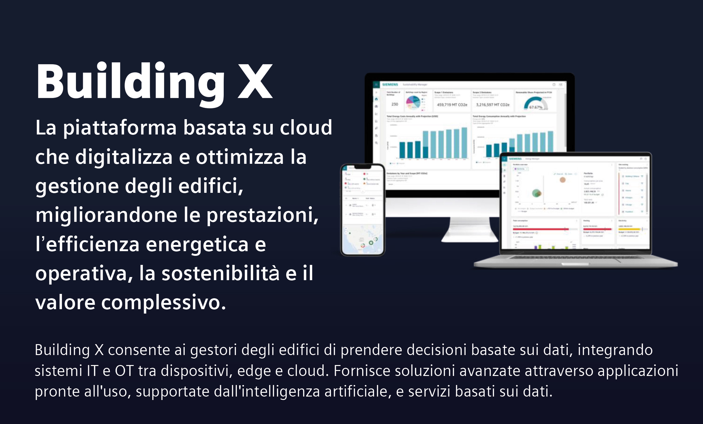 Per l’implementazione delle funzionalità di monitoraggio energetico, Siemens ha introdotto, tra i primi progetti pilota in Italia, l’utilizzo della piattaforma Building X integrata con il Desigo CC on-premise attraverso applicazioni dedicate di Energy Manager e Data Visualizer. Il sistema permette non solo la supervisione dei quadri elettrici ma facilita anche il monitoraggio avanzato dei consumi energetici e delle emissioni.