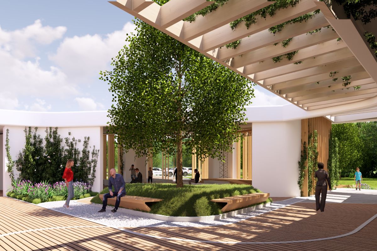 La struttura si articolerà in due blocchi indipendenti, collegati all’edificio esistente ma con accesso autonomo, sempre fruibili dall’esterno. Si tratta di due piazze coperte dal tetto giardino che a sua volta crea un secondo livello fruibile e non costruito.